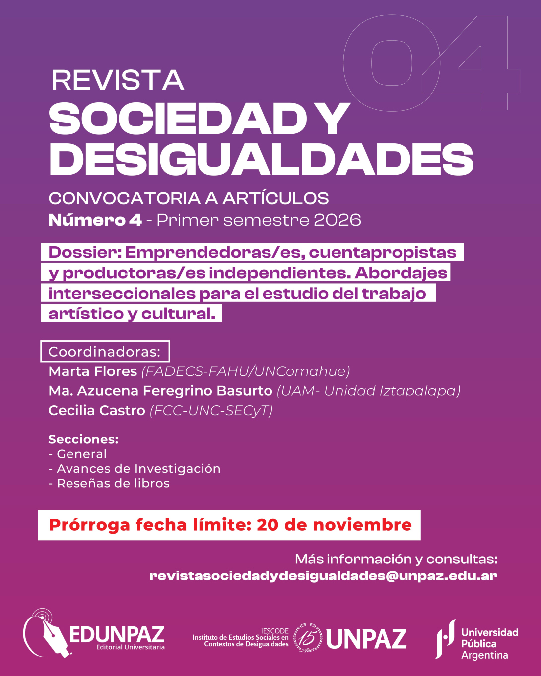 20 Noviembre Se abre la convocatoria para la presentación de artículos para el cuarto número de la revista Sociedad y Desigualdades