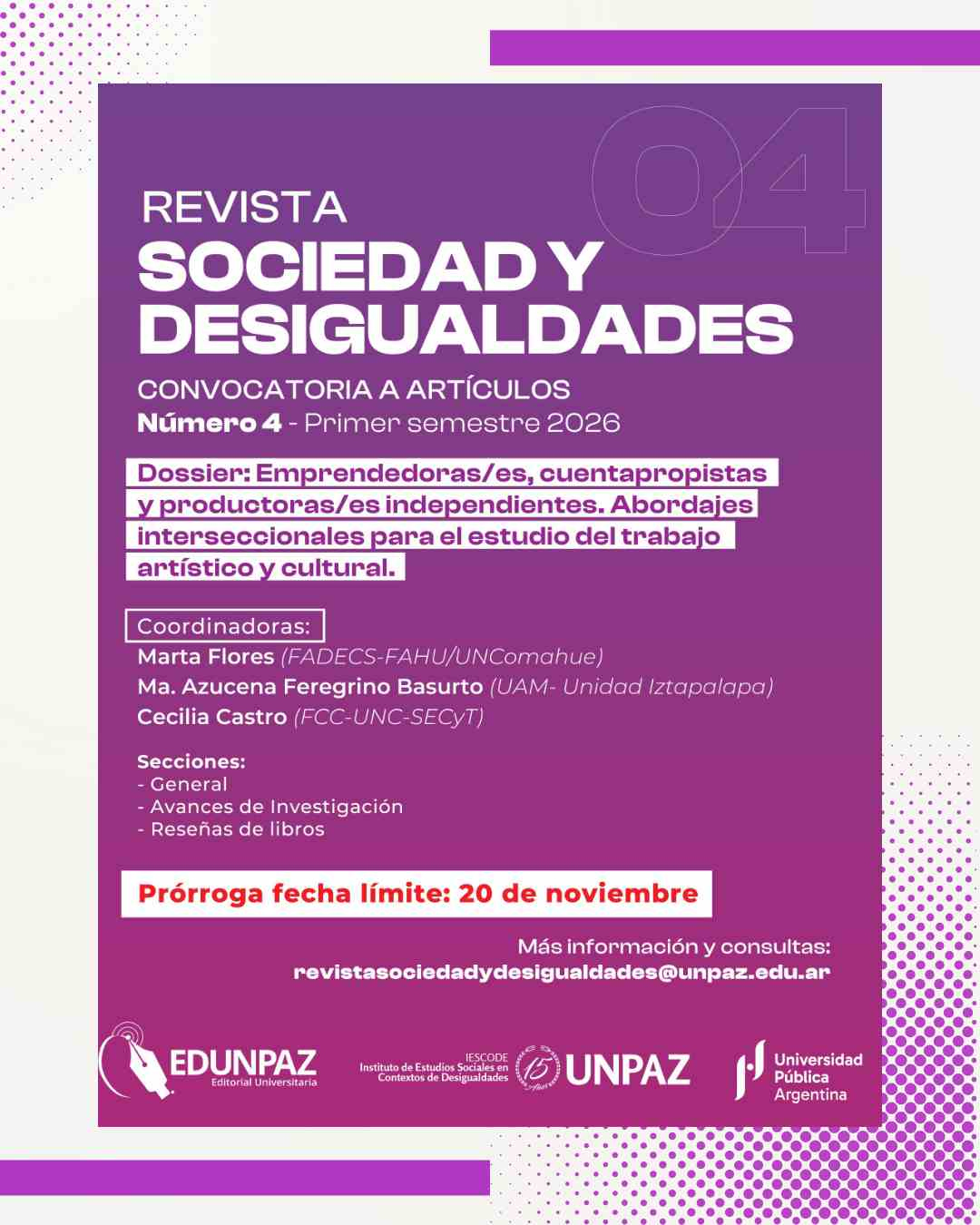Convocatoria para la presentación de artículos - Sexto número Revista Sociedad y Desigualdades (IESCODE-UNPAZ)