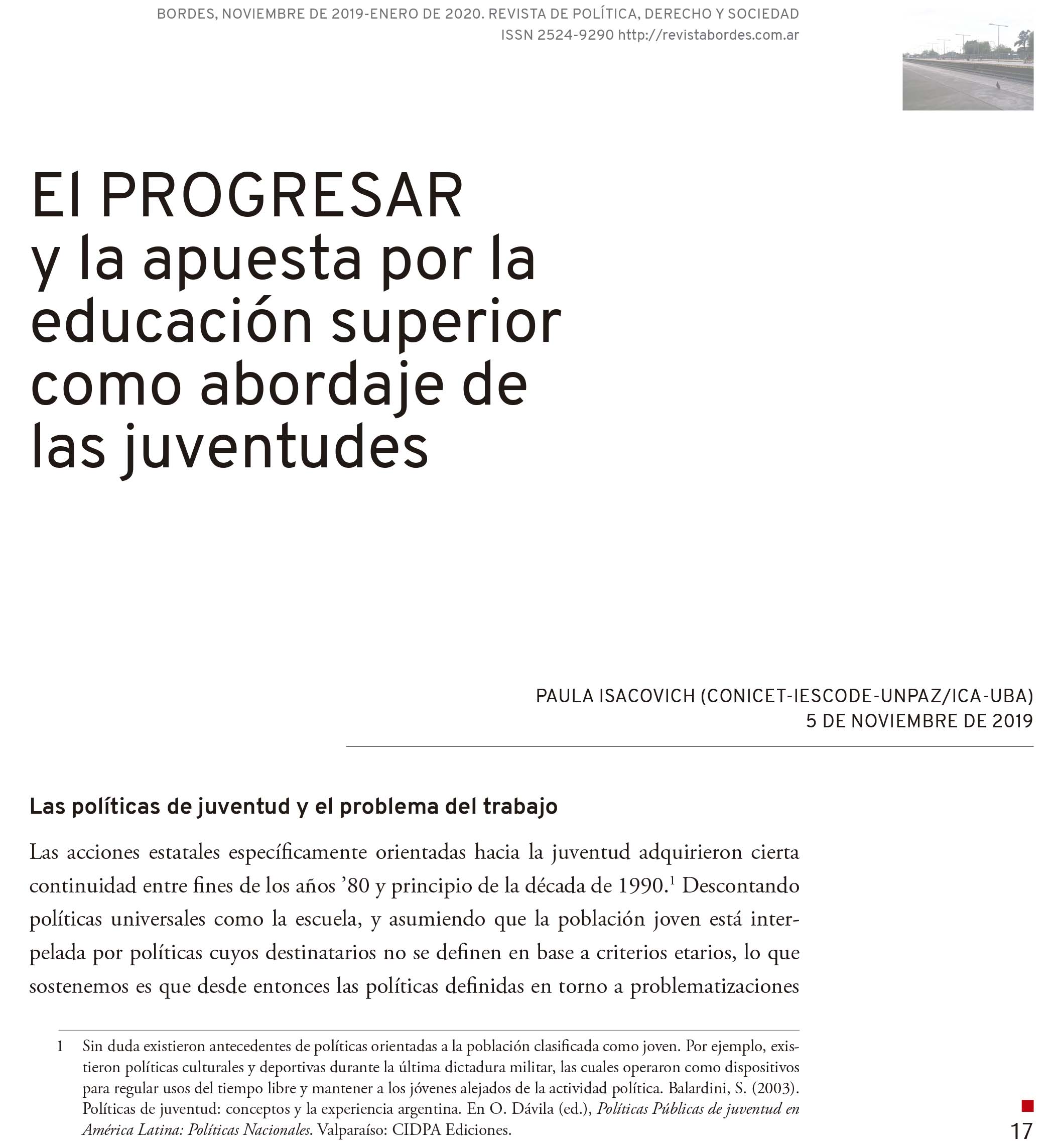Universidades y políticas sociales. El PROGRESAR y la apuesta por la educación superior como abordaje de las juventudes